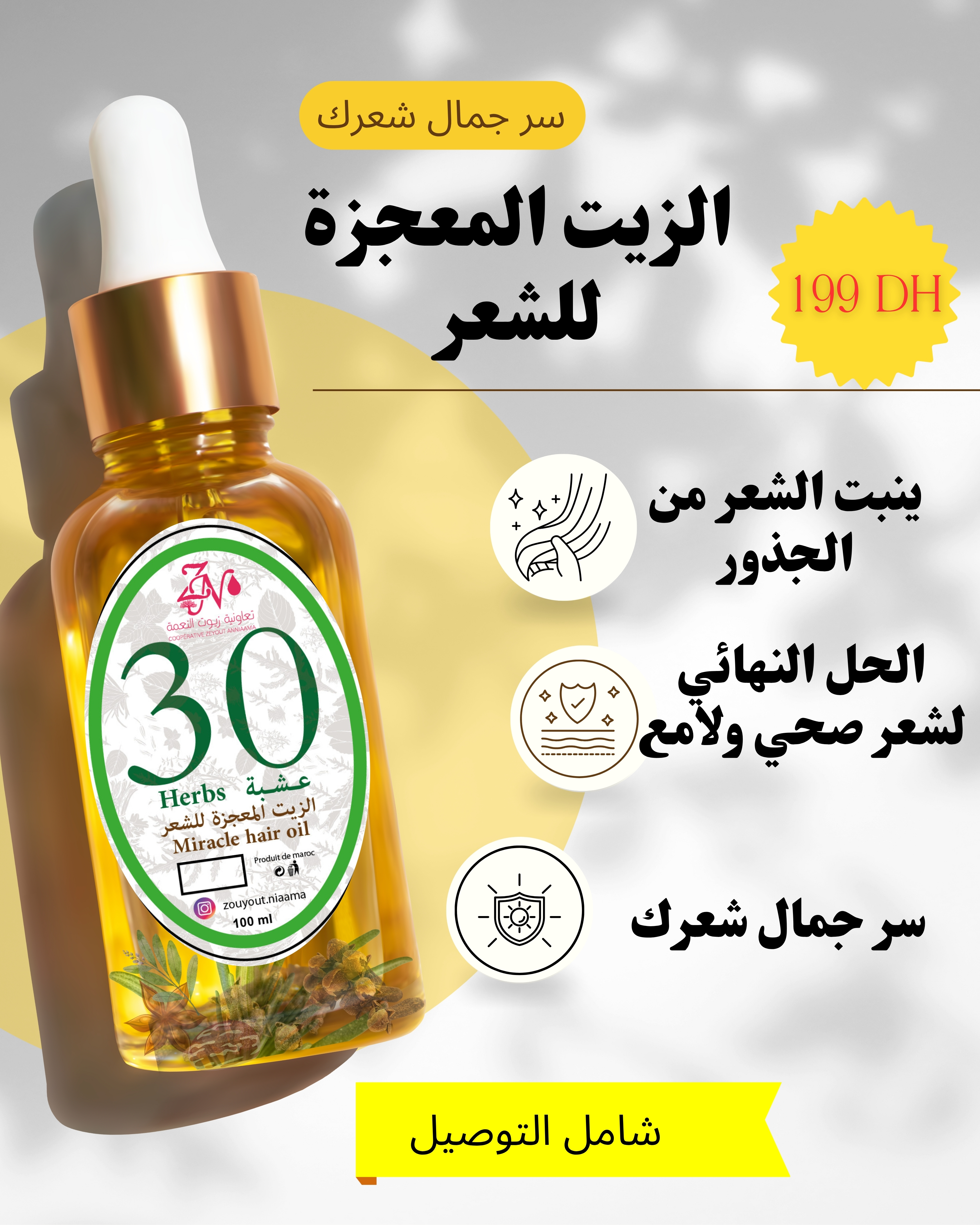 💥 Ne laissez pas la faiblesse et la perte de vitalité vous arrêter. Grâce à sa formule révolutionnaire, cette huile pénètre profondément pour transformer vos cheveux, leur redonner force, douceur et éclat dès la toute première application.🌿 100% naturel, sans compromis, elle est votre alliée pour une métamorphose capillaire spectaculaire. Né remettez plus votre beauté à demain : offrez à vos cheveux le soin qu’ils méritent, et voyez la différence en un clin d’œil !Votre nouvelle chevelure de rêve vous attend — il suffit de faire le premier pas.